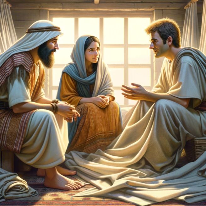 아굴라라 하는 본도에서 난 유대인 하나를 만나니 글라우디오가 모든 유대인을 명하여 로마에서 떠나라 한고로 그가 그 아내 브리스길라와 함께 이달리야로부터 새로 온지라 바울이 그들에게 가매 업이 같으므로 함께 거하여 일을 하니 그 업은 장막을 만드는 것이더라 [사도행전 18:2-3]